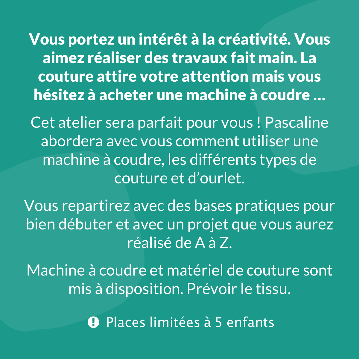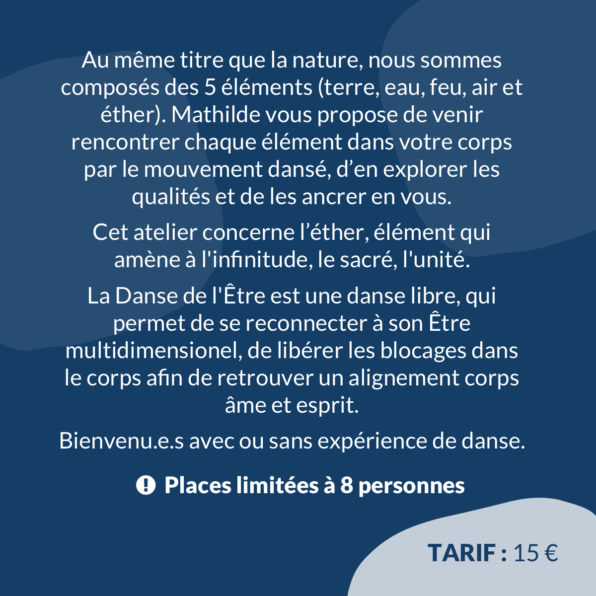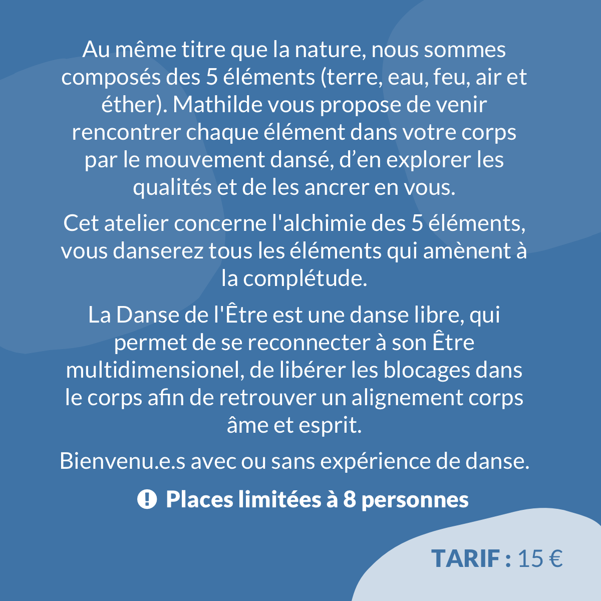 Places limitées à 14 personnes.